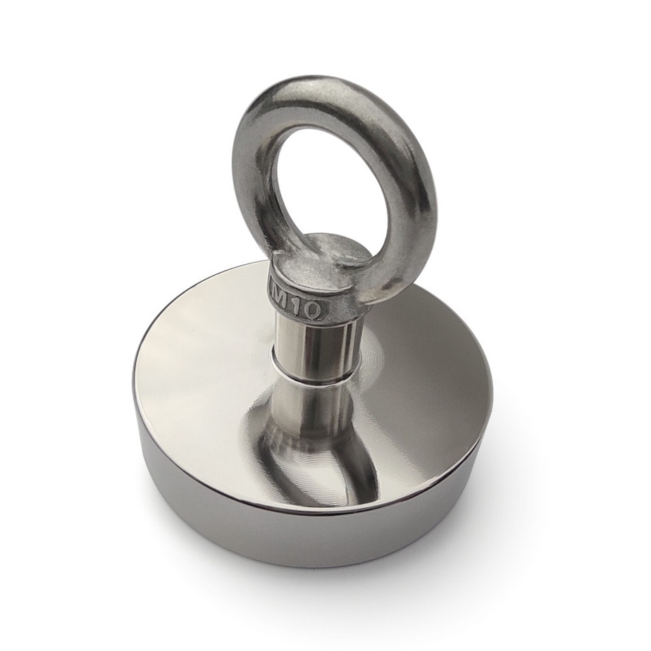Magnet extrem de puternic conceput special pentru pescuitul cu magnet. Acest magnet poate trage un obiect de 290 de kilograme în condiții ideale. Cu cât magnetul este mai puternic, cu atât veți găsi mai multe obiecte. Un magnet puternic atrage obiecte mai îndepărtate și acestea nu se desprind atât de ușor atunci când sunt trase de pe fund. Dacă aveți un magnet slab, puteți găsi un obiect dar să nu îl puteți scoate.